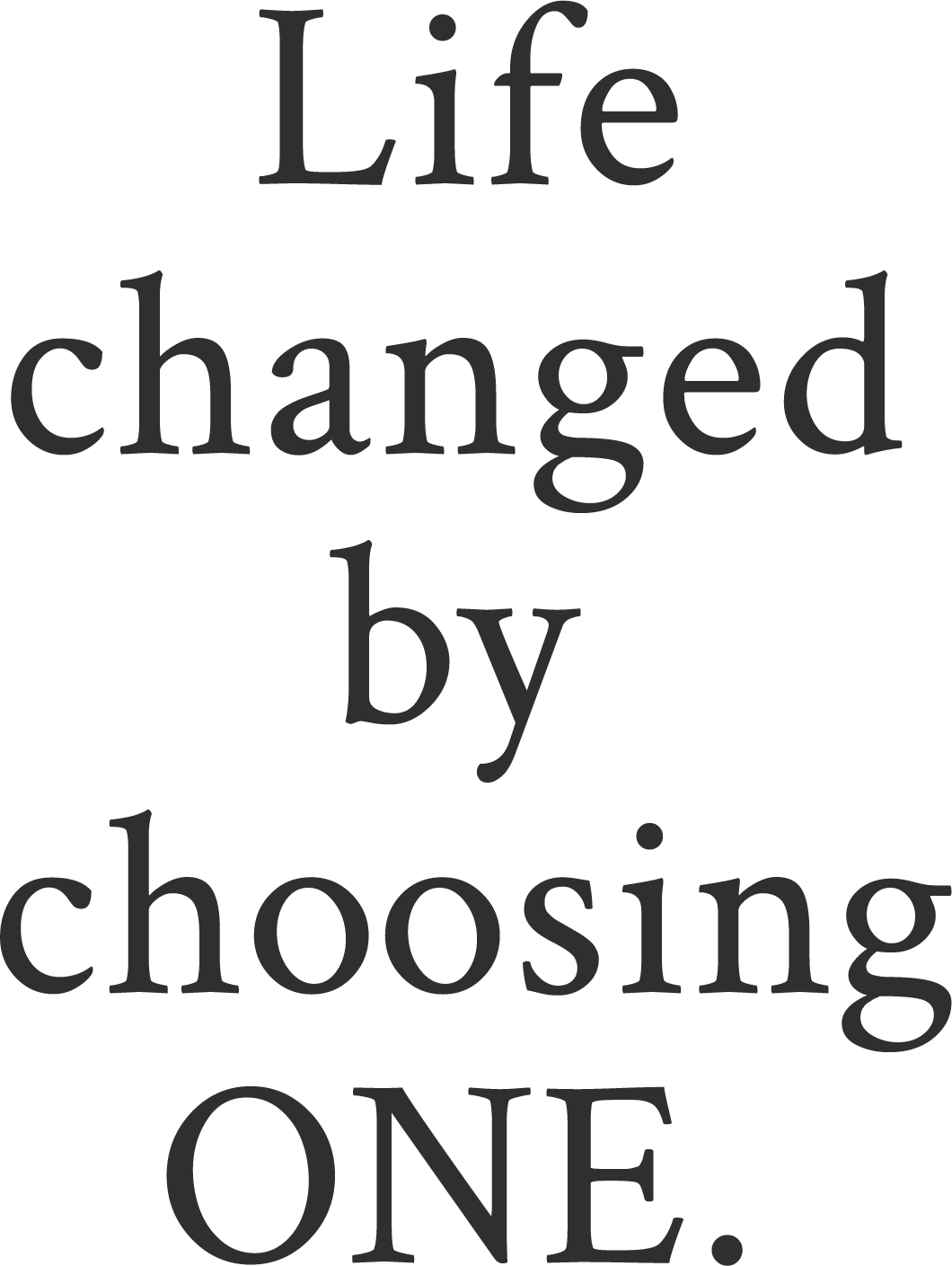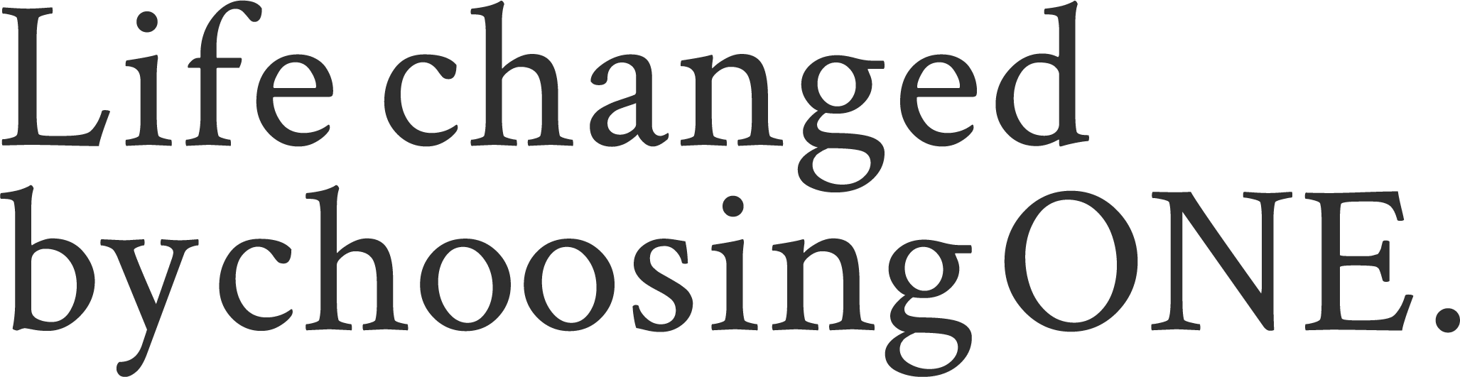 Life changed by choosing ONE. Life changed by choosing ONE.